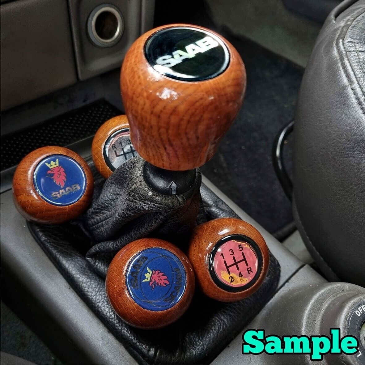 High quality oak made SAAB wooden gear knob. Wooden Saab shift knob has a logo sticker (you can stick it by yourself) and it looks better in you classic SAAB.